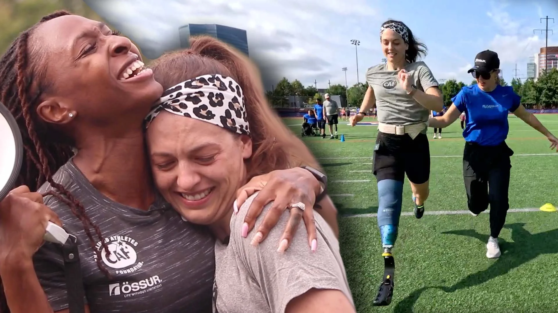 Participating in physical therapy programs where a sport-specific limb helps regain strength safely